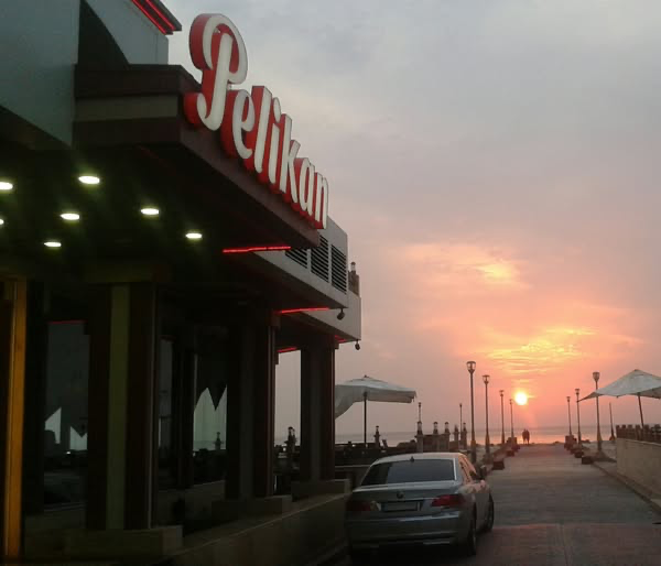 على الكورنيش البحري وضمن لسان بحري صغير يقع مطعم بيلكان، كأنه بجعة على الشاطئ فعلاً.