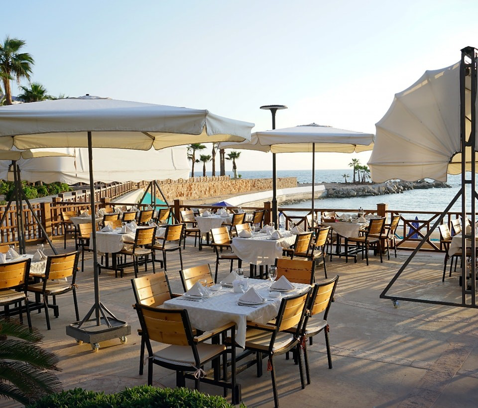 بالاضافة إلى ذلك يقدم المطعم قائمة كاملة من الأطباق الشرقية المعتادة والأطباق البحرية والأسماك المتنوعة بما يتناغم مع اطلالة المطعم المميزة على بحر طرطوس الرائع.