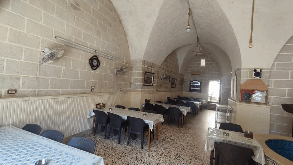مطعم شعبي قديم يقع مقابل مرفأ أرواد تماما في المدينة القديمة، تدخل المطعم كأنك في متحف حي، تشعر بالتاريخ المتعشق بالجدران الحجرية، وتعطيك القباب المتداخلة والسقف العالي جواً من الانشراح رغم مساحة المكان المحدودة، البحرة الصغيرة في وسط المطعم تضفي طابعاً خيالياً على المطعم.